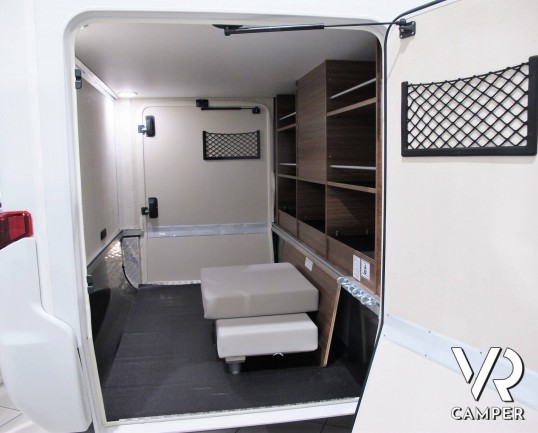 "L’HYMER Backrack+ con svariati componenti modulari vi apre un nuovo e personalizzato mondo del trasporto di viaggio conferendo un look del tutto originale al vostro furgonato."