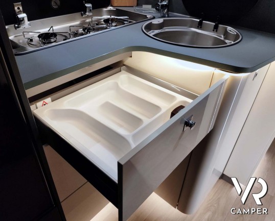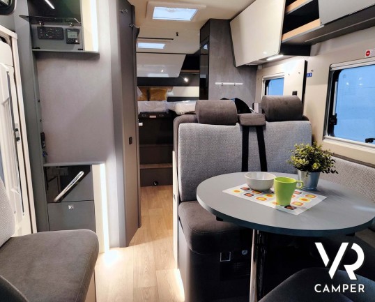 Motorhome dalla struttura aperta e spaziosa, con altezza interna di 210 cm. L'unione perfetta di leggerezza, praticità e inconfondibile stile italiano.