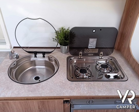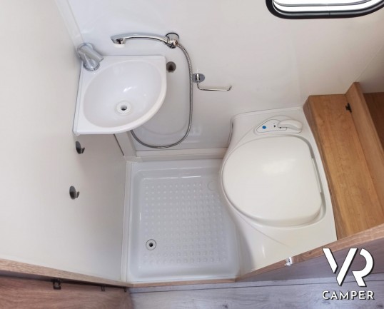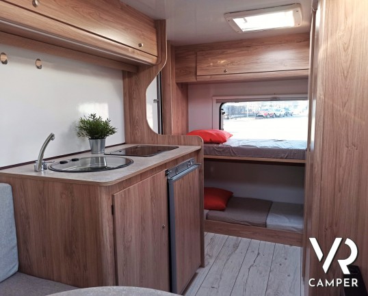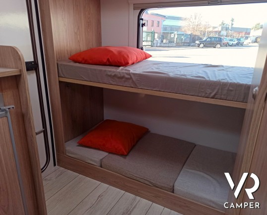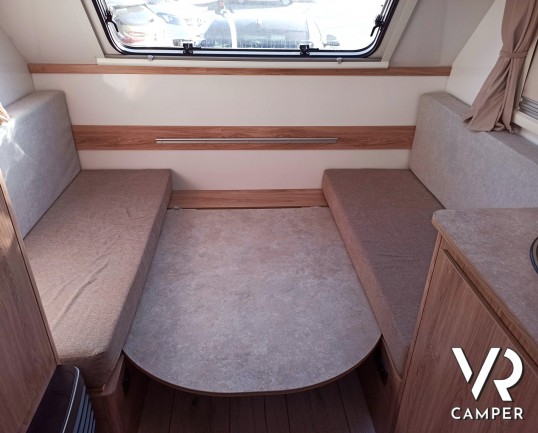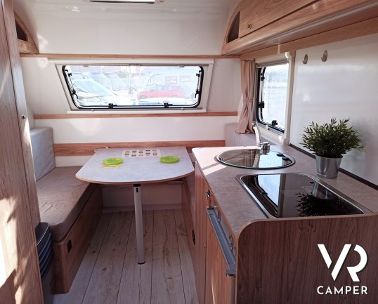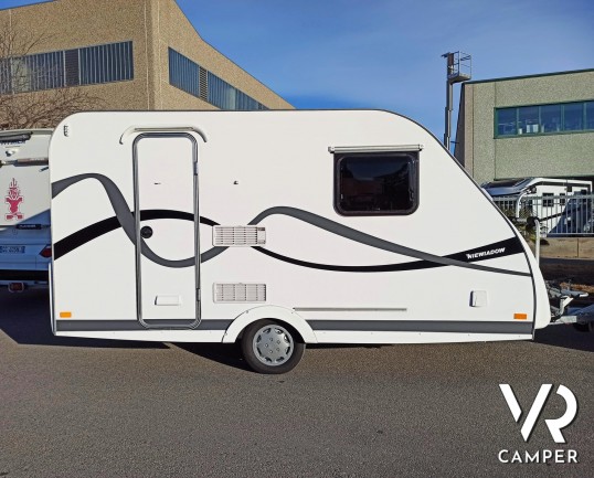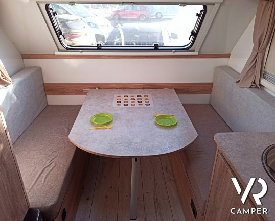 Caravan usata compatta con 4 posti letto, lunghezza di 5,61 metri. In vendita alla sede VR Camper di Torino - Druento.
