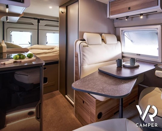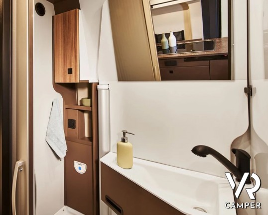 Pacchetto B66: - Cambio automatico da 140 CV - Cerchi in lega bicolore da 16 pollici - Gradino d'ingresso apribile elettricamente - Zanzariera plissettata per porta scorrevole - Piano cottura a 2 fuochi con lavello integrato e coperchio in vetro separato - Frigorifero a compressore da 84 L (incluso scomparto congelatore da 6 L) - Stazione multimediale con telecamera di retromarcia - Veranda antracite – 3,75 m