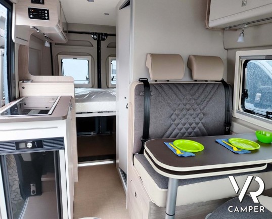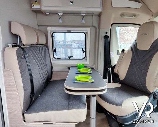 Burstner Campeo C 540: furgonato da 4 posti letto, con tetto abitabile. Accessoriato con Pacchetto Active e Pacchetto Fiat. Su Fiat Ducato 140 CV.