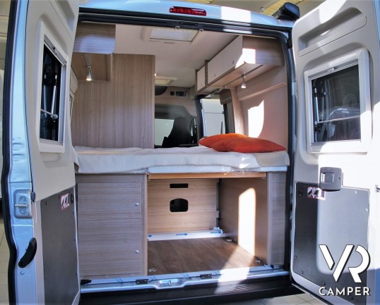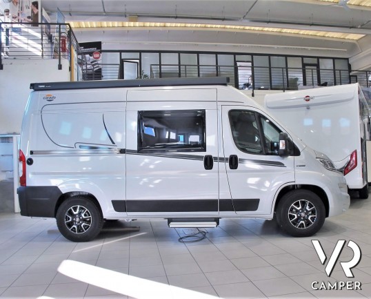 Carado CV 540: camper furgonato nuovo con letto matrimoniale trasversale, colore Grigio Alluminio. su Fiat Ducato 140 CV. In vendita da VR Camper a Torino.