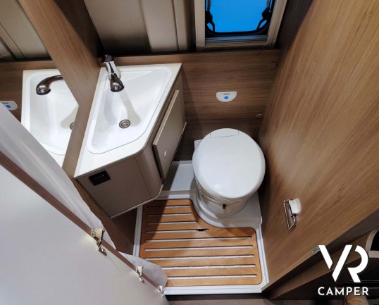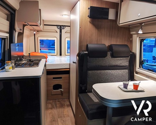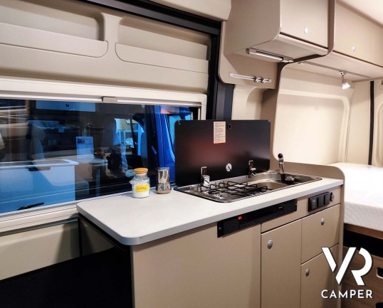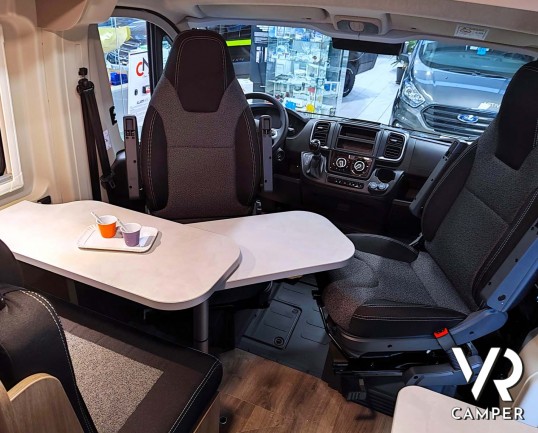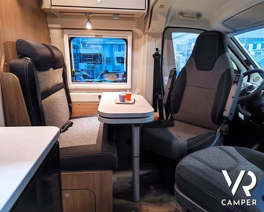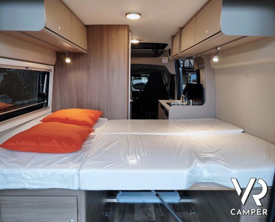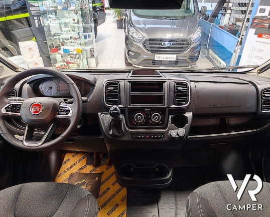 Camper furgonato con tetto sollevabile e 4 posti letto. Dotato di pacchetto Sicurezza, pacchetto Style, riscaldamento diesel Combi 4. Su Fiat Ducato 140 CV