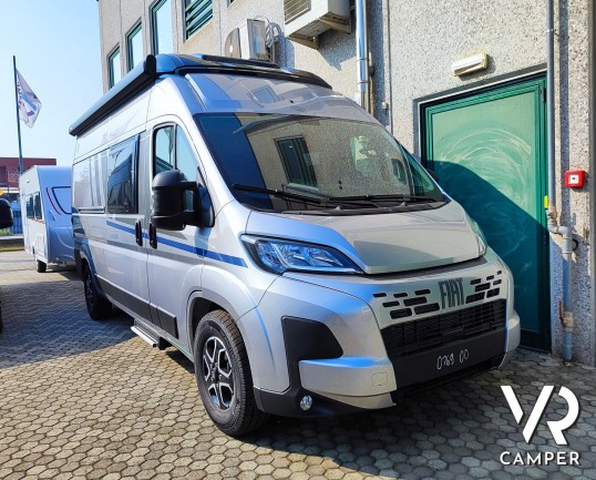 Camper furgonato nuovo con tetto sollevabile e 4 posti letto letto. Pratico e versatile, sempre equipaggiato con tutto per partire. Su Fiat Ducato 140 CV.