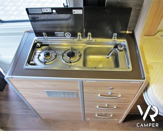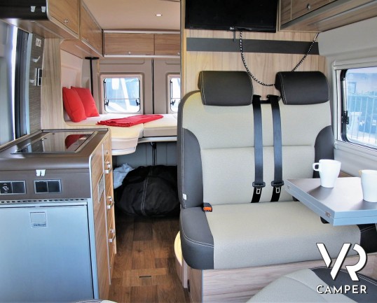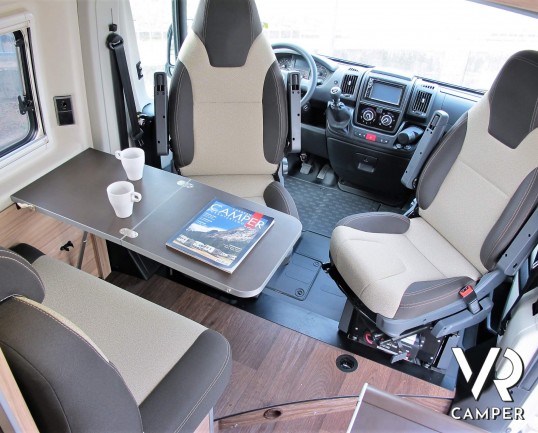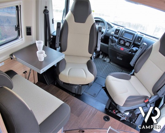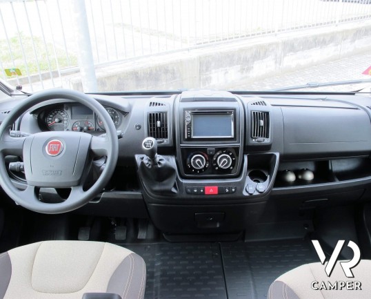 "La dotazione di base è già discreta e prevede finestrini elettrici, sedili cabina girevoli in tessuto come la dinette, doppio airbag, cruise control, ESC traction e Hill Holder, chiusura centralizzata."