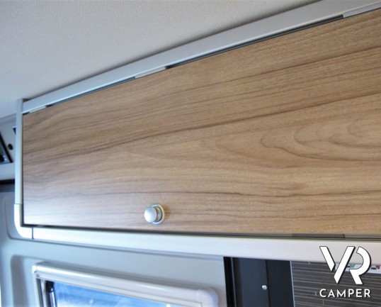 "Sui due lati, in alto, grandi pensili con buoni spazi di stivaggio."