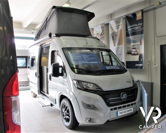 Modello speciale Hymer Free Campus: camper furgonato nuovo modello 2020, con letto sul tetto sollevabile,160 cv. Per spostarsi con eleganza in pieno relax.