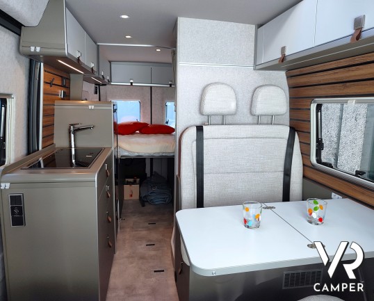 Fiat Ducato 2,2 140 CV, Vernice pastello Grigio Lanzarote, Cerchi in lega da 16", Tetto sollevabile, 2 sedie + tavolo pieghevole,