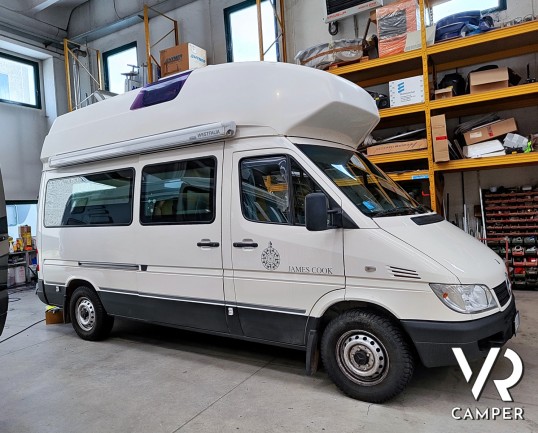Furgone camperizzato usato con 5 posti omologati, su meccanica Mercedes Benz 156 CV. In vendita da VR Camper a Torino - Druento.