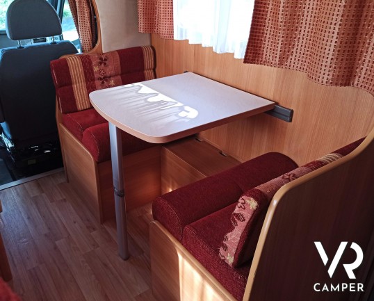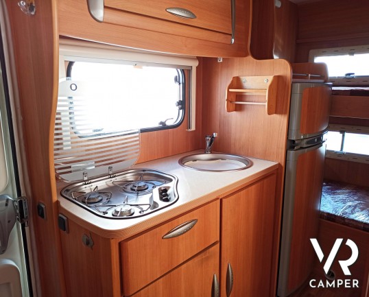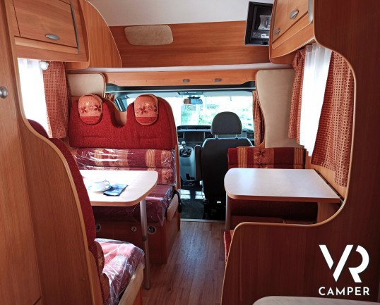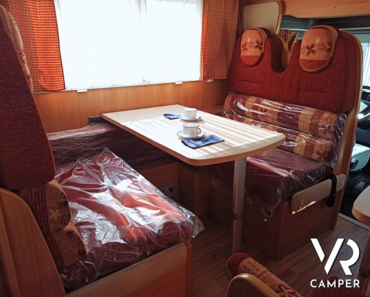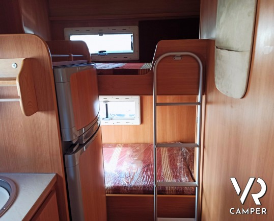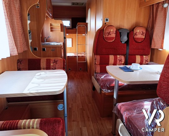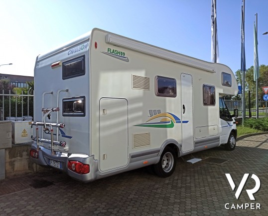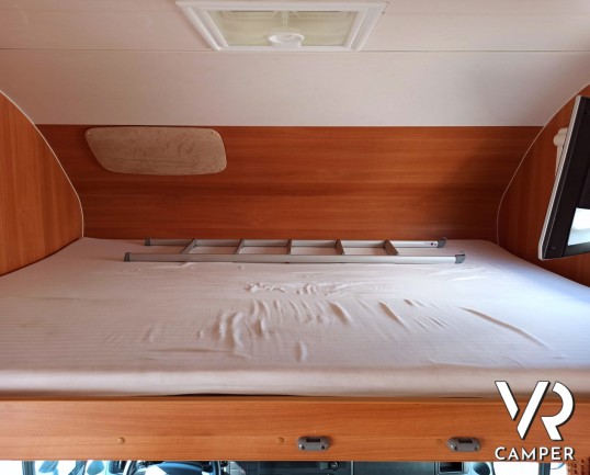 Camper usato mansardato con ruote posteriori gemellate. Dotato di portabici, veranda e riscaldatore. 7 posti letto e 5 posti viaggio.