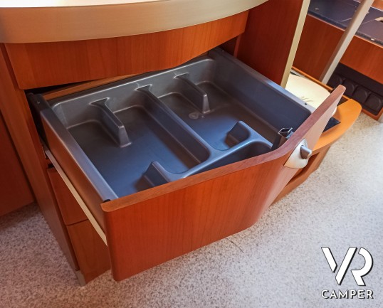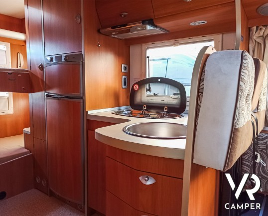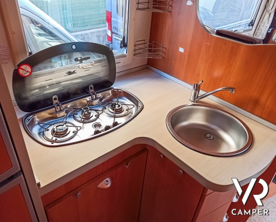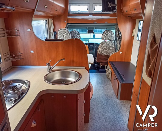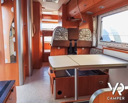 6,48 metri, 6 posti viaggio, 6 posti letto e 6 posti tavola.