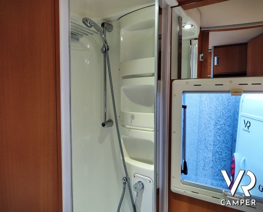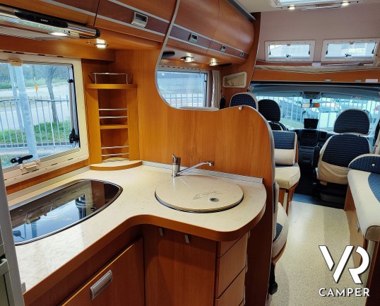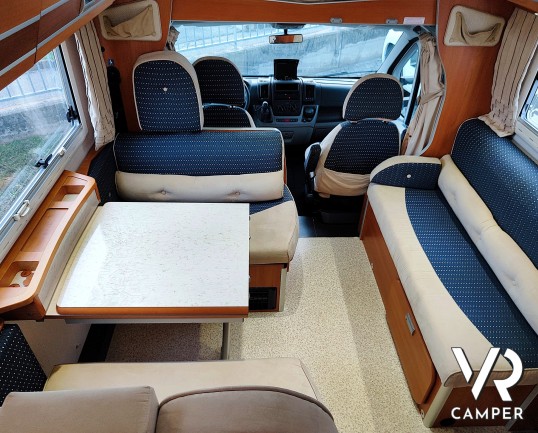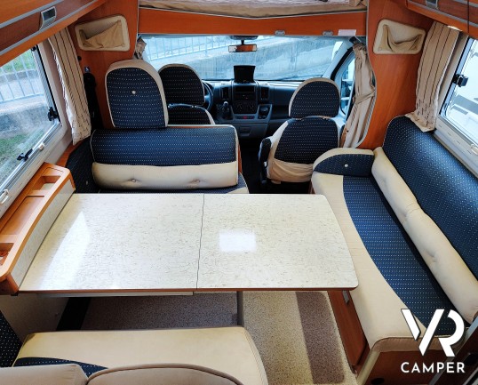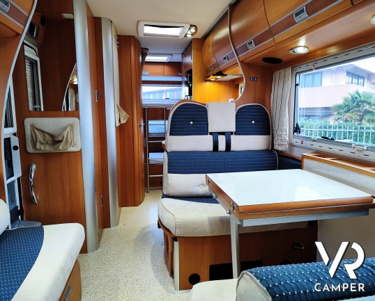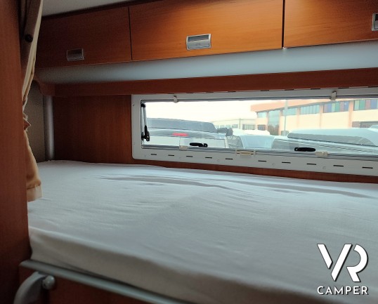 Camper mansardato usato 5 posti con letti a castello in coda, bagno con doccia, dinette con doppio divanetto. Su Fiat Ducato 156CV. In vendita da VR Camper