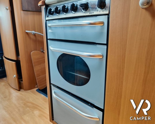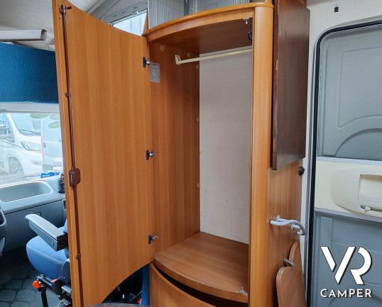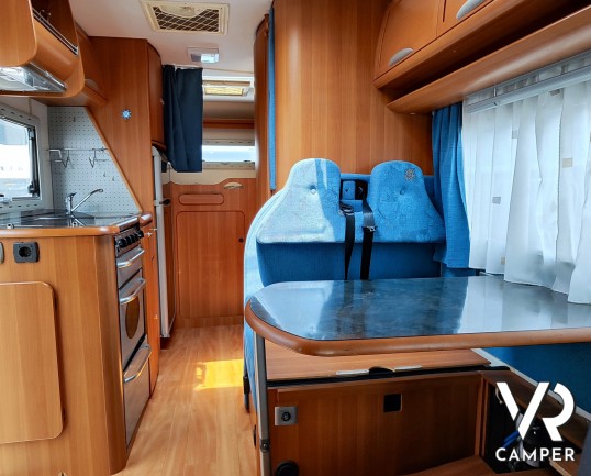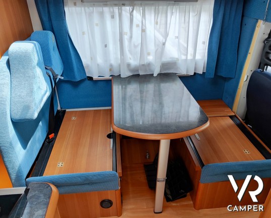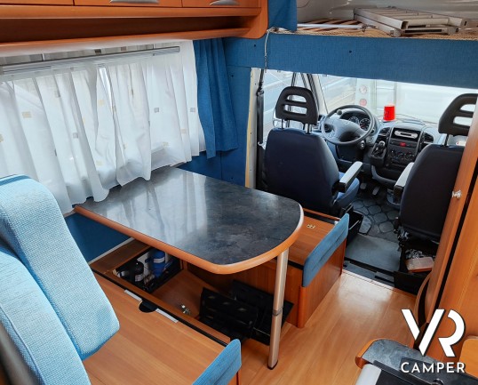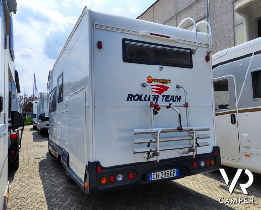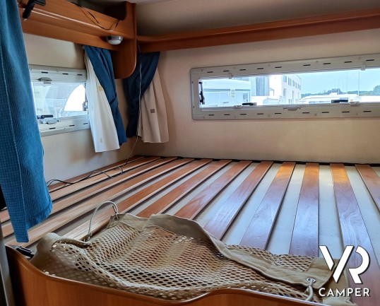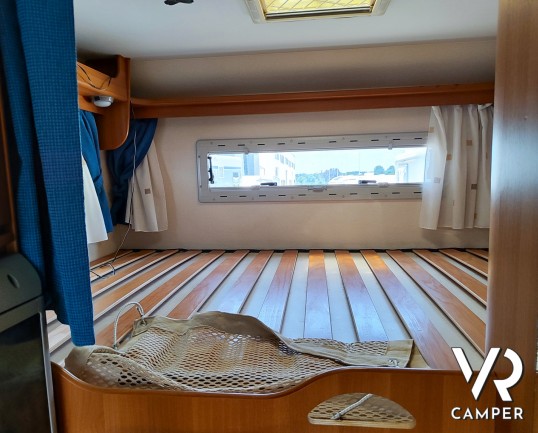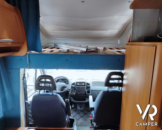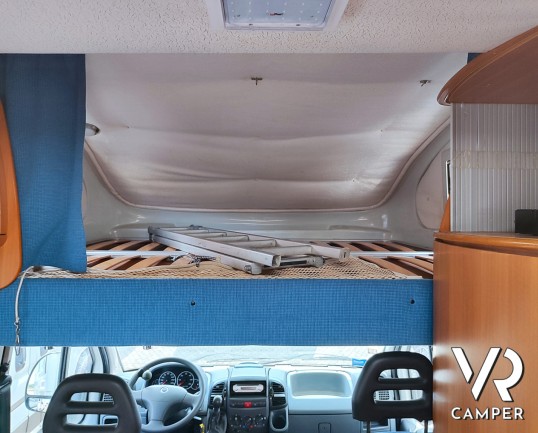 Camper mansardato usato con 6 posti letto, accessoriato con tendalino, portabici, sospensioni, Webasto. Lungo meno di 7 metri. Da VR Camper a Torino.