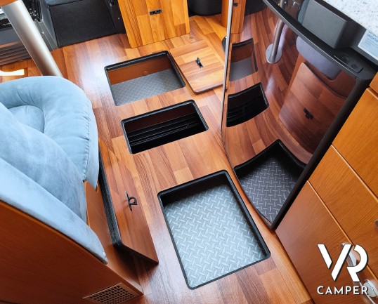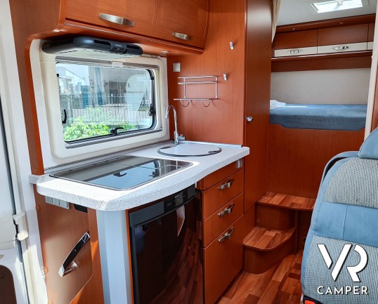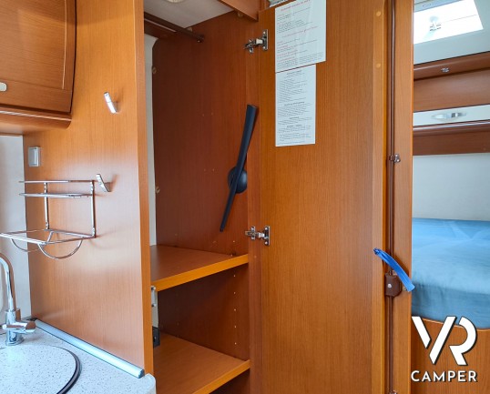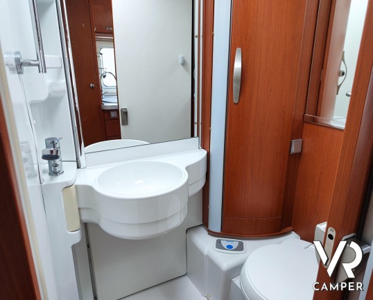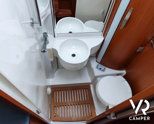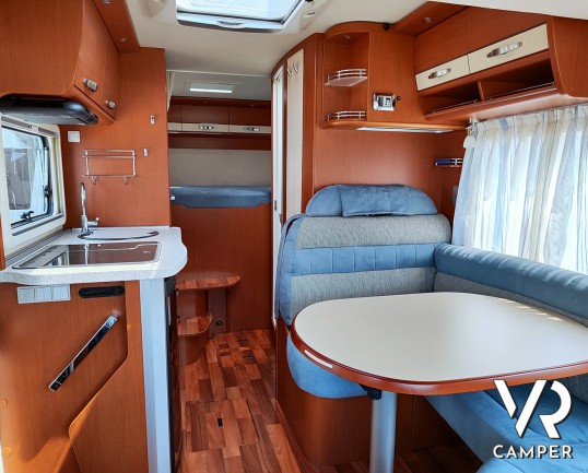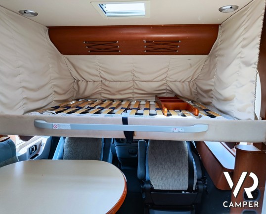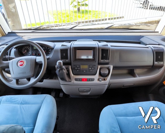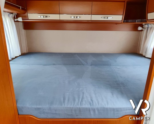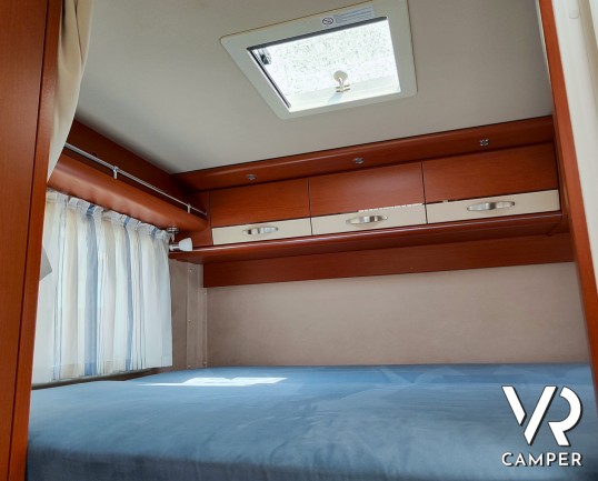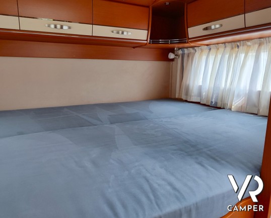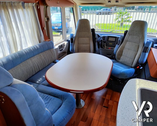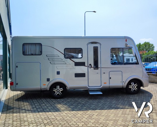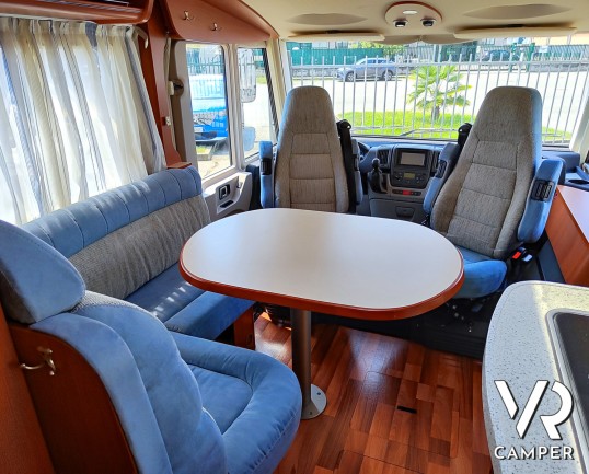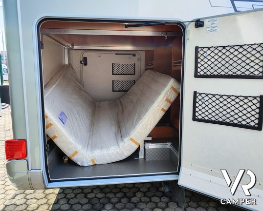 Camper motorhome usato con letto matrimoniale posteriore trasversale e ampio garage, su potente meccanica Fiat Ducato. In vendita da VR Camper a Torino.