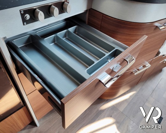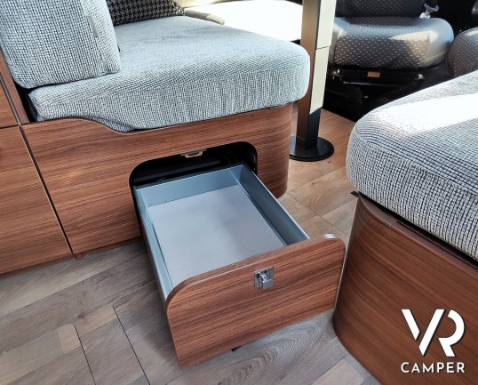 - Cassetto estraibile con inserto per posare i poggiatesta, nella dinette