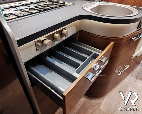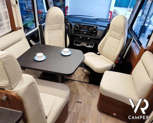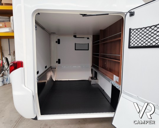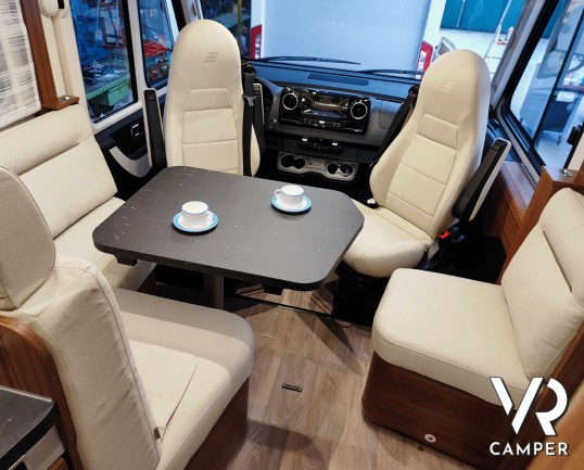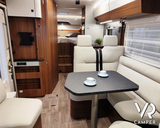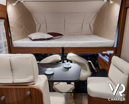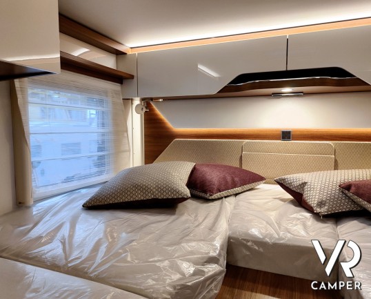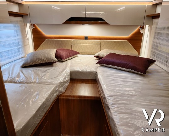 Pacchetto Comfort Abitativo 4: - Pedana doccia in legno - Coprimaterasso per letti posteriori - 4 cuscini foderati - Ambient-Light System - Rivestimento parete cucina incluse prese elettriche aggiuntive