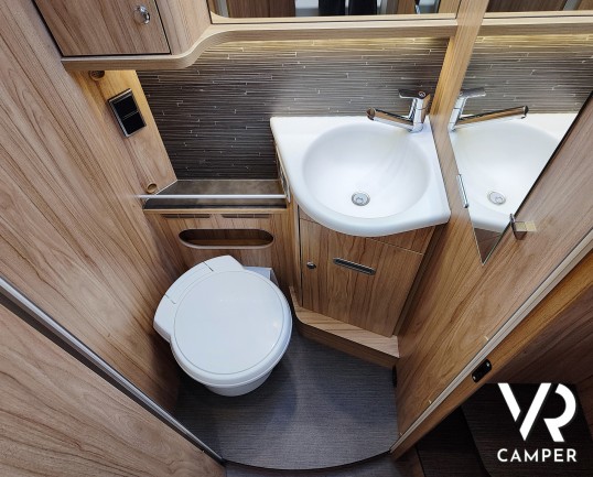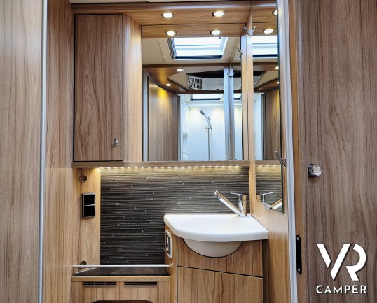 Hymer Exsis-I 594: camper nuovo motorhome con letto trasversale e bagno con doccia separata. Su motore Fiat Ducato 150 CV. In vendita da VR Camper a Torino