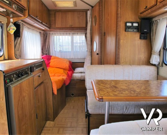 Hymermobil 554: camper motorhome usato con doppia dinette e letto matrimoniale basculante, 5 posti letto. Su Fiat Ducato 92 CV. In vendita da VR Camper.