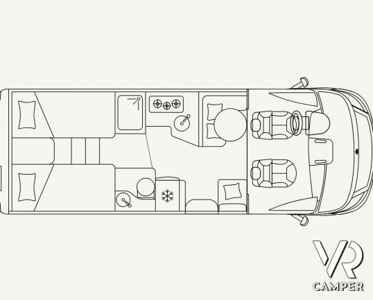 Pacchetto Confort Kosmo: - Serbatoio delle acque grigie isolato - Predisposizione retrocamera - Serbatoio riscaldato - Pedana doccia - Moquette in cabina guida - Cappa aspirante in cucina