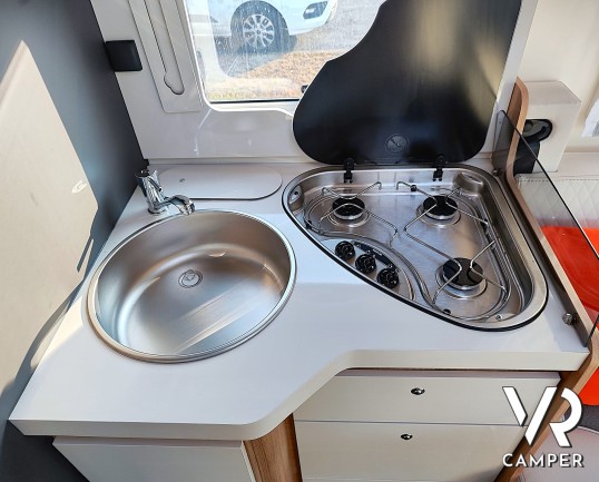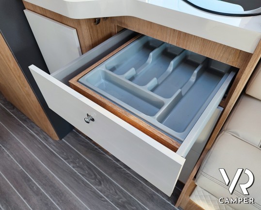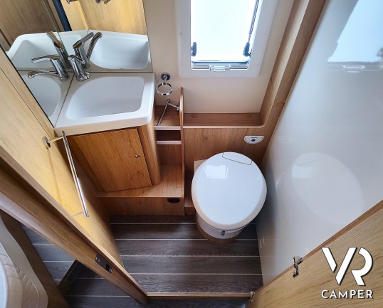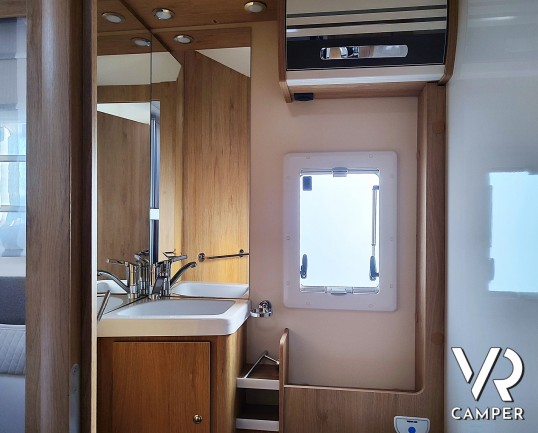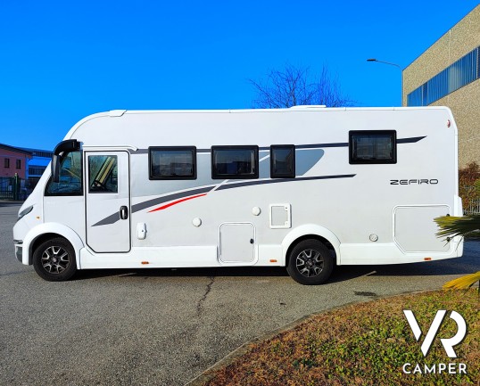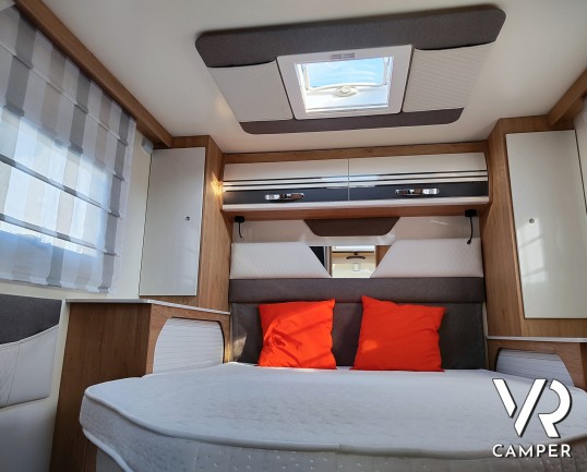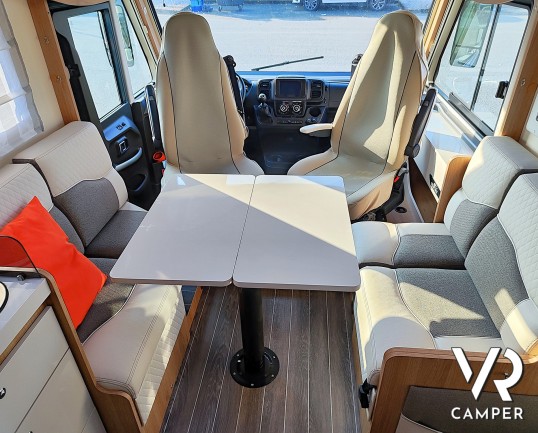 Camper usato motorhome, modello recente e con pochi chilometri. Piantina con letto nautico centrale. In vendita da VR Camper a Torino - Druento.