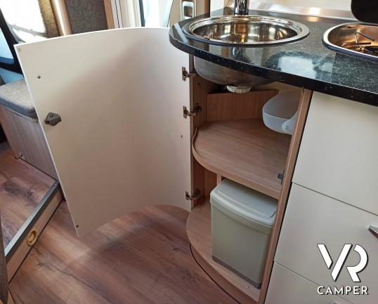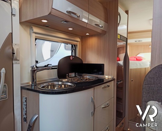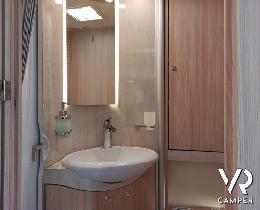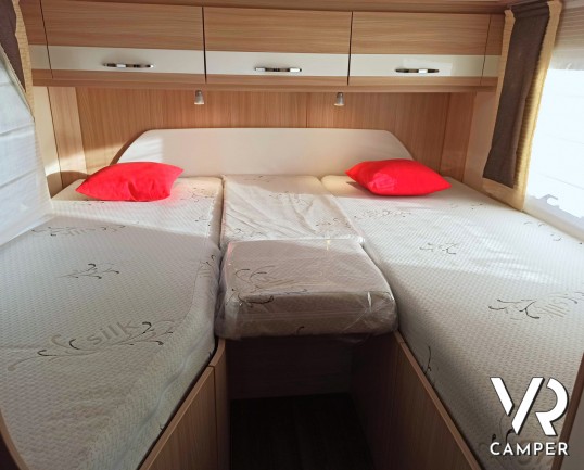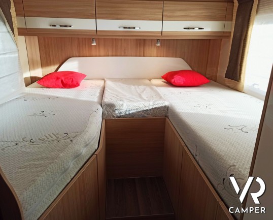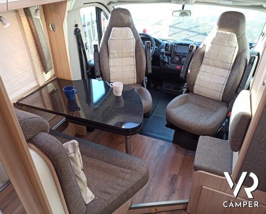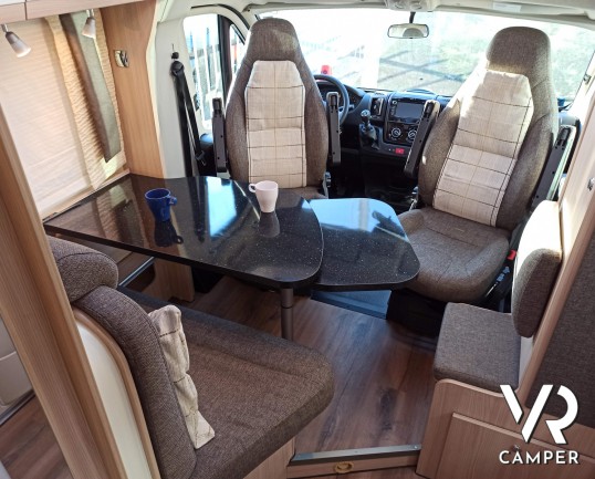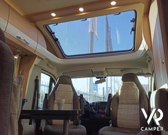 Camper semintegrale usato con 3 posti letto e 4 omologati, letti gemelli e garage. Su Fiat Ducato 130 CV. In vendita da VR Camper a Torino - Druento.