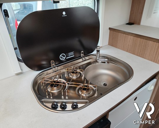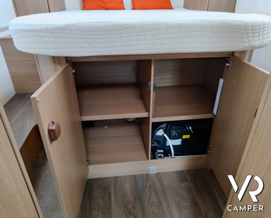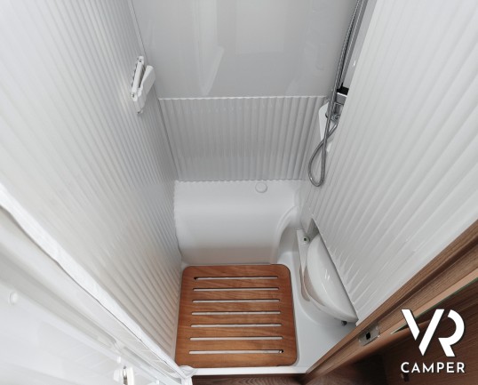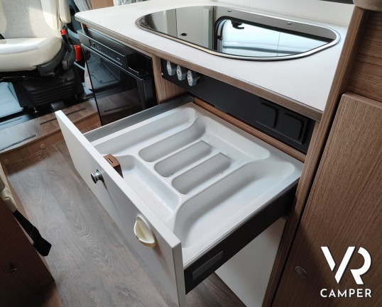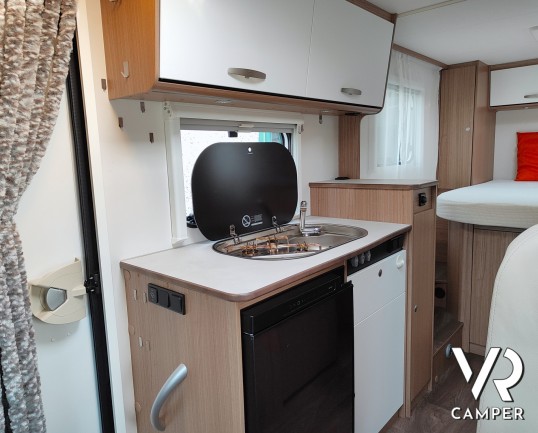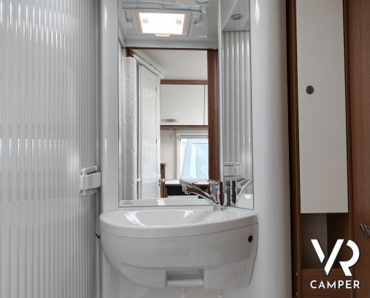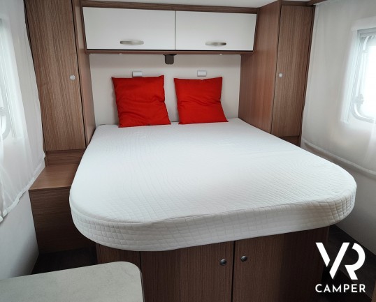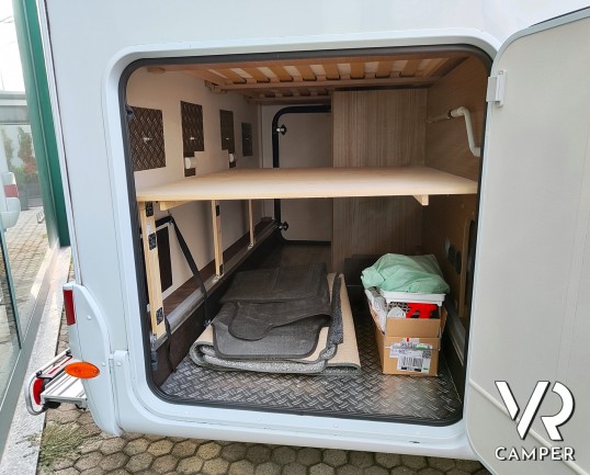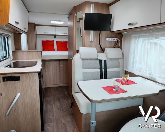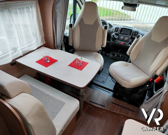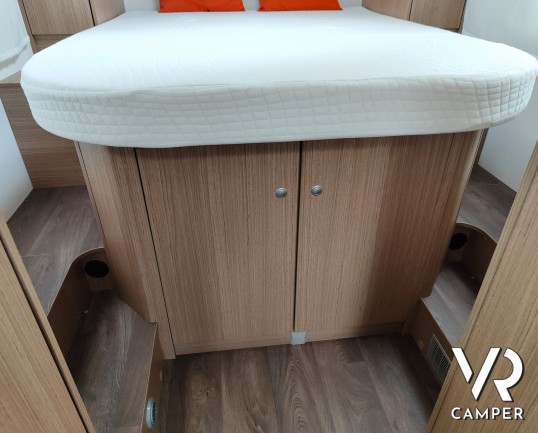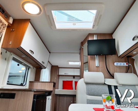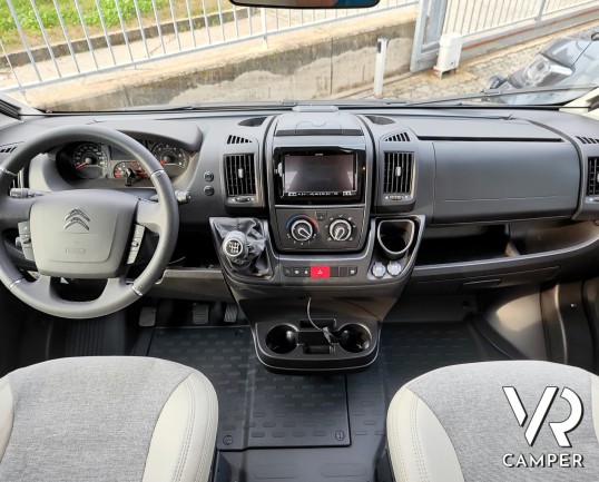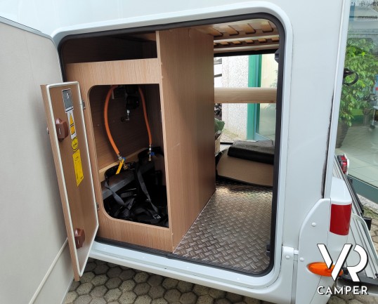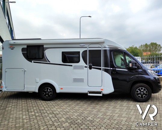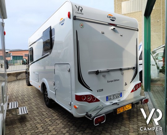 Carado V 339: camper semintegrale stretto con letto nautico posteriore e portamoto, sotto i 7 metri di lunghezza. Su Citroen Jumper 140 CV.