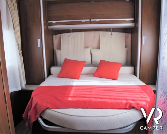 "All’interno, i designer Knaus hanno completamente ridisegnato il mobilio, ora abbinato a tinte chiare e luminose, superfici curate e forme morbide pensate per ottimizzare spazio ed ergonomia."