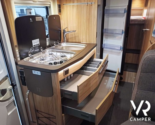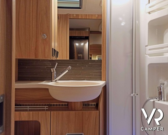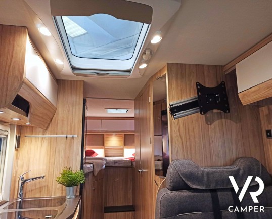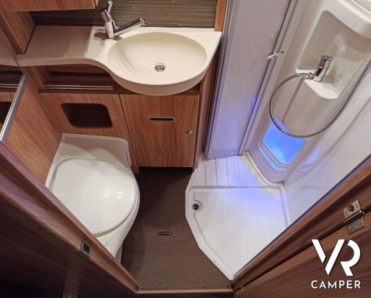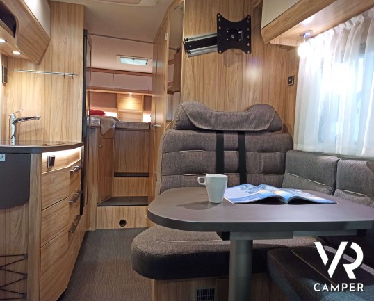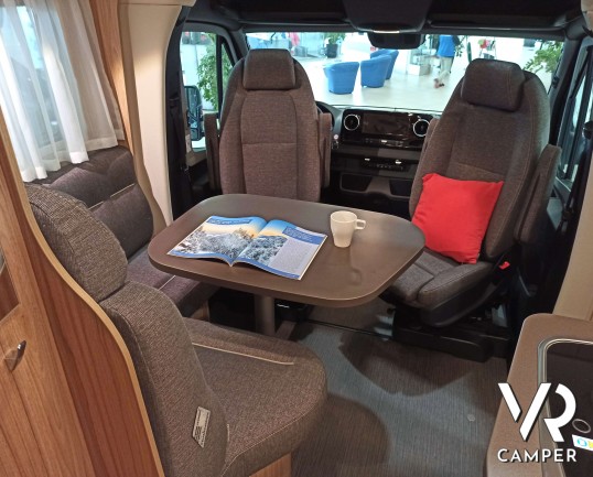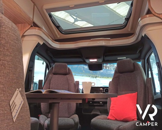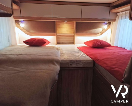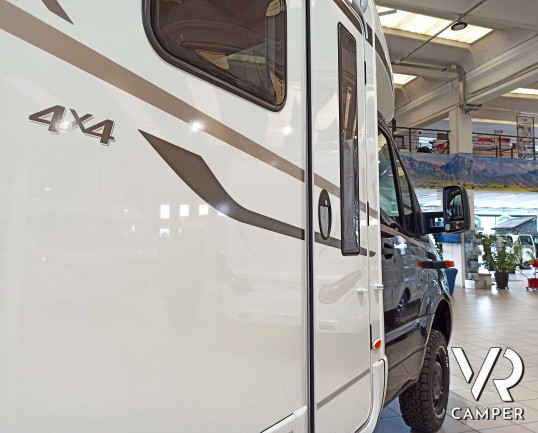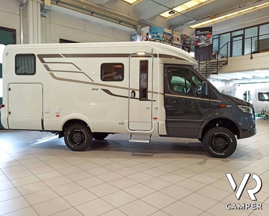 Hymer ML-T 580: camper semintegrale su Mercedes a trazione integrale. Con letti gemelli posteriori, dinette convertibile in letto, garage. Da VR Camper.