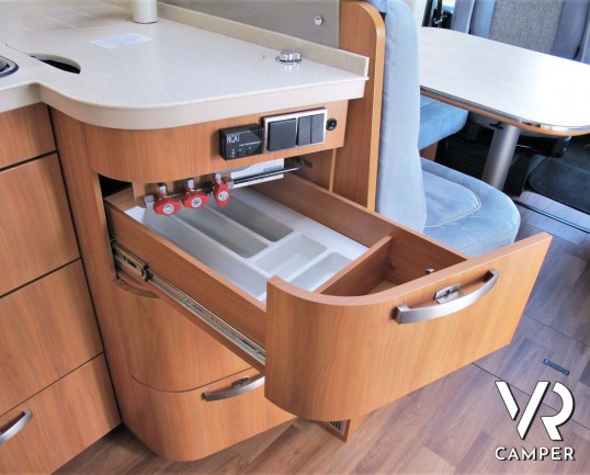 • Prese 220 V, 12 V e USB supplementari, cablaggio originale Hymer