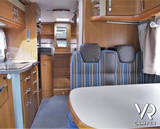 Hymer Tramp 674 SL: camper usato semintegrale colore esterno silver, 3 posti letto, con letti gemelli e garage. Su Fiat Ducato 3.0 Maxi, 156 CV.