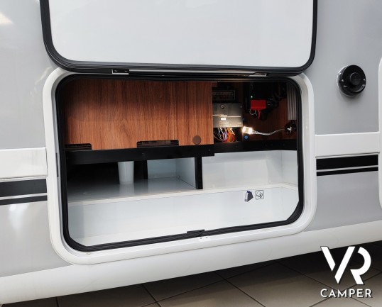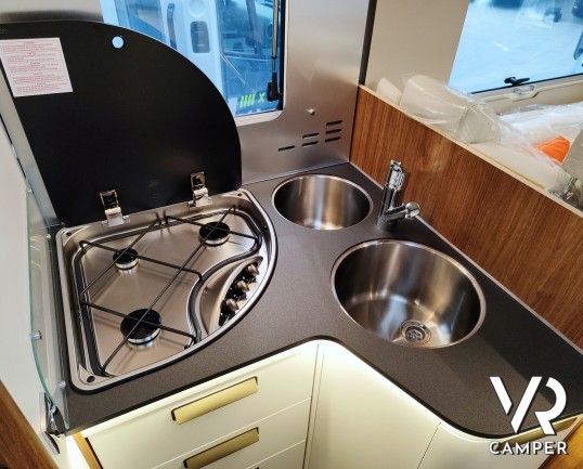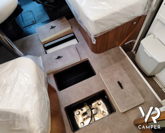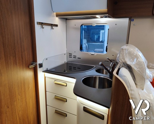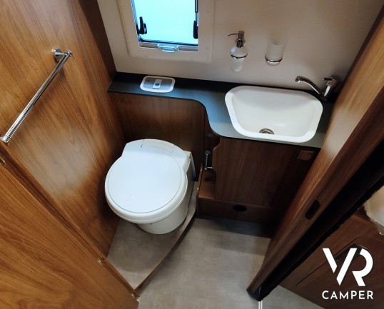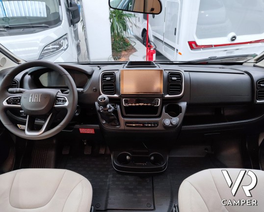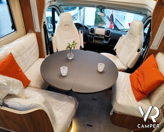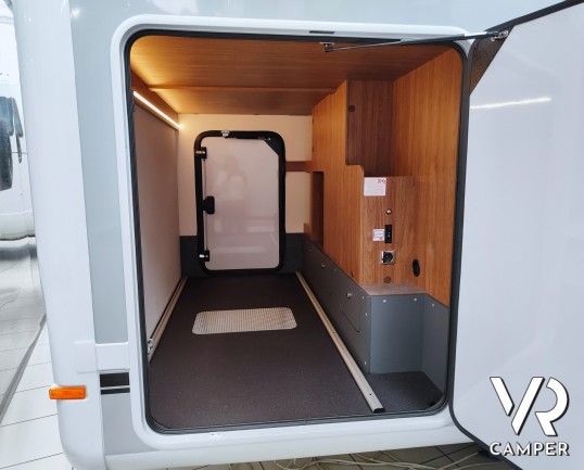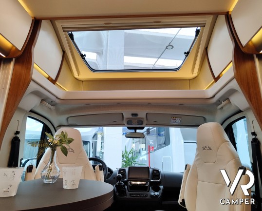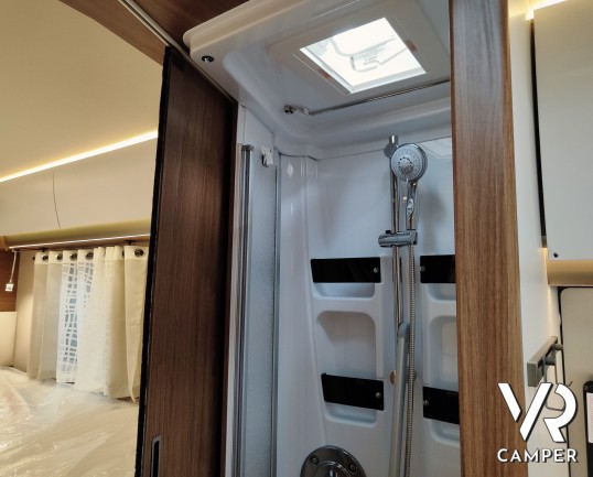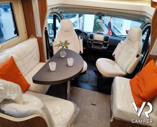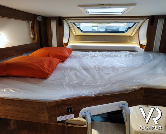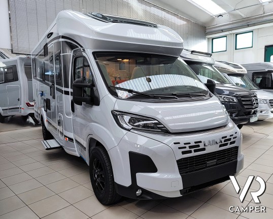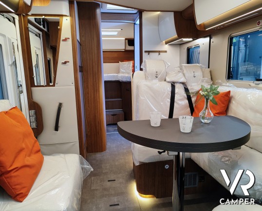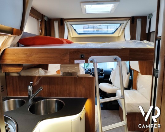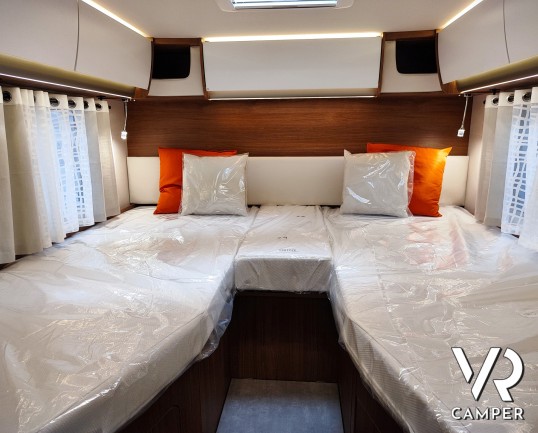 Camper semintegrale colore Titanio, con letti gemelli e letto basculante, bagno e doccia separati, garage. In visione da VR Camper a Torino - Druento.