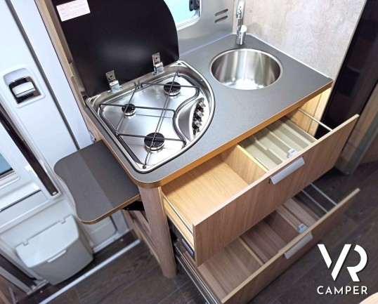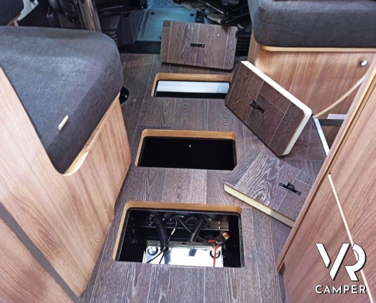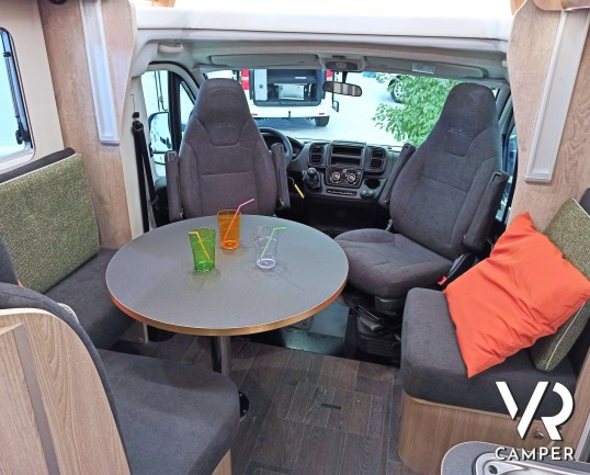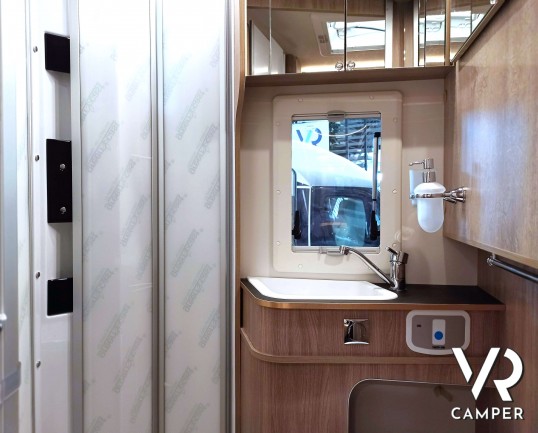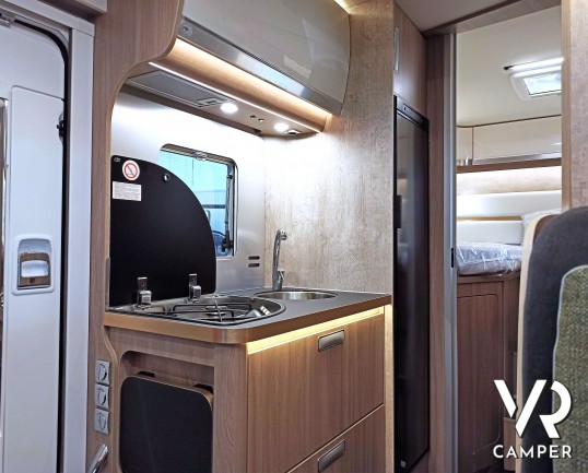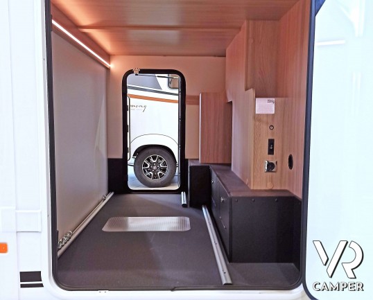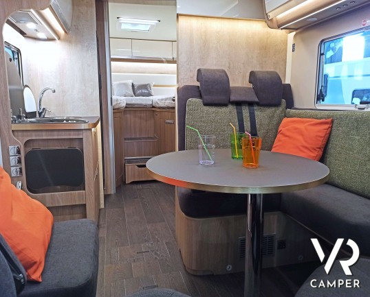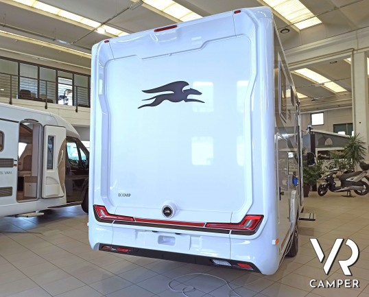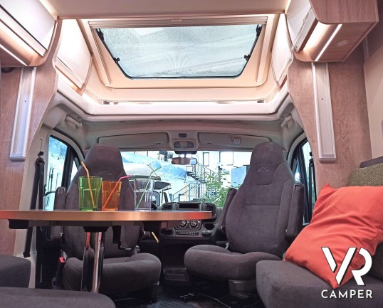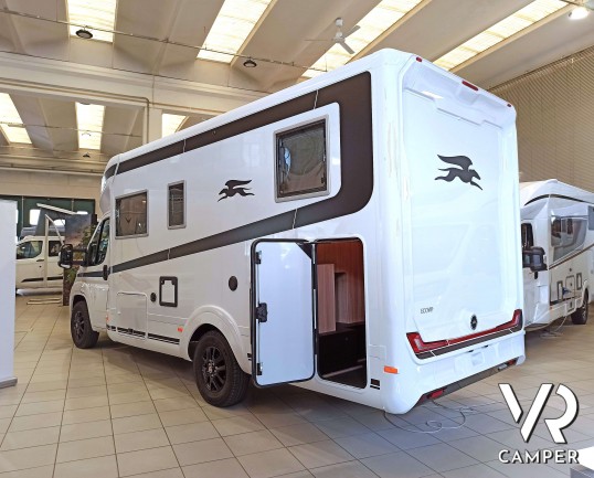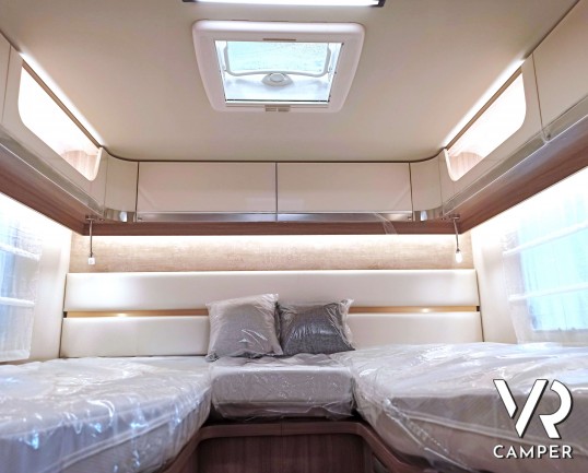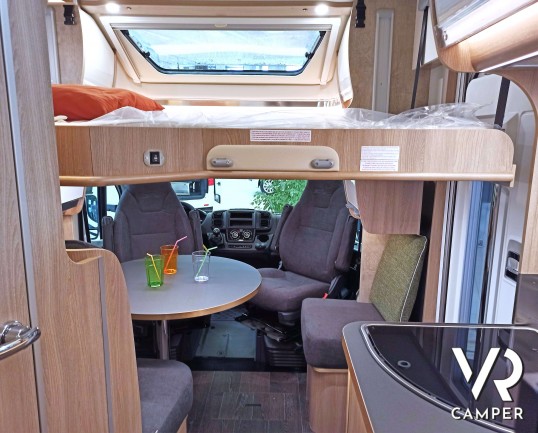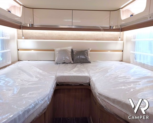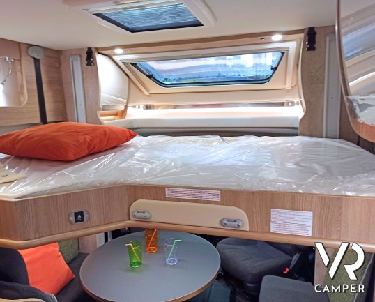 Camper semintegrale Laika, con letti gemelli trasformabili in matrimoniale e basculante elettrico. Prodotto realizzato in Italia e di alta qualità.