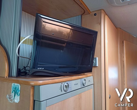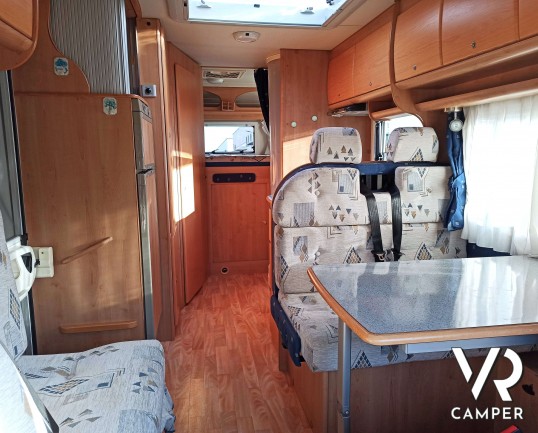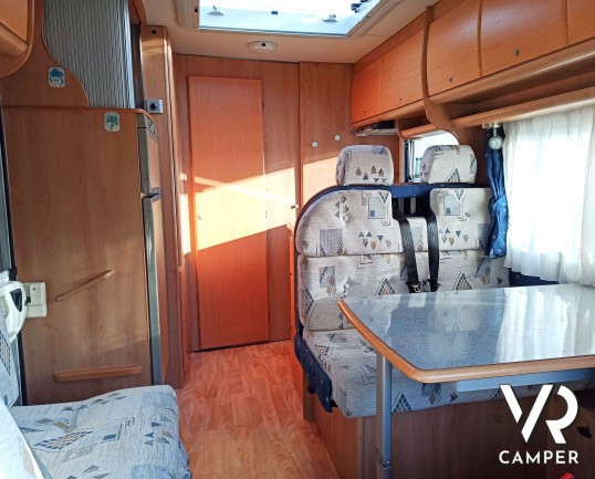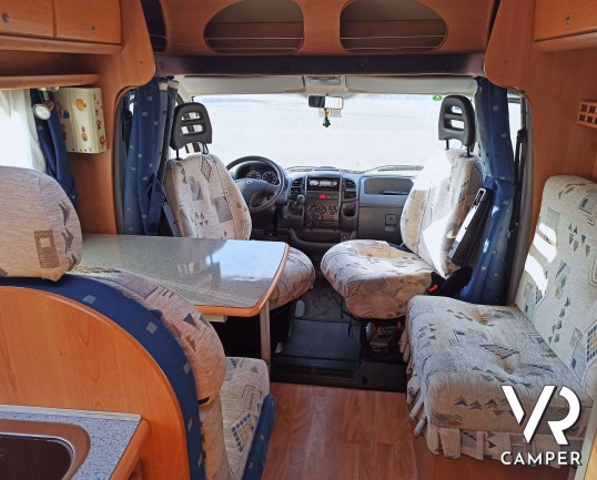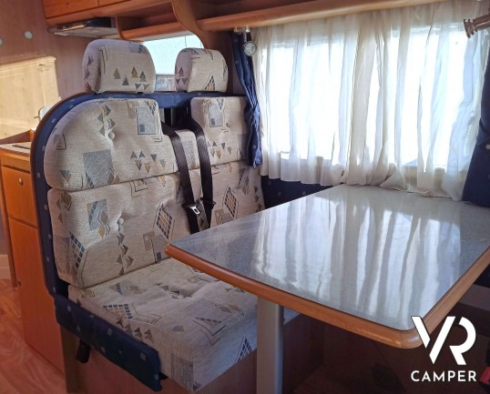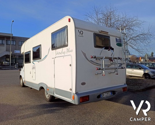Camper usato semintegrale con 5 posti, dotato di tendalino, portabici, antenna tv, climatizzatore. Su Fiat Ducato 146 CV. In vendita da VR Camper a Torino.