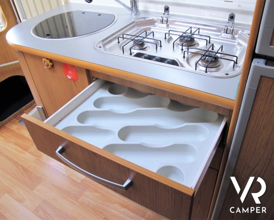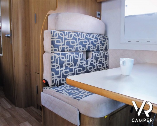 "All’interno, i designer Knaus hanno completamente ridisegnato il mobilio, ora abbinato a tinte chiare e luminose, superfici curate e forme morbide pensate per ottimizzare spazio ed ergonomia."