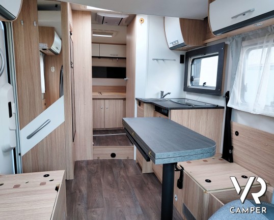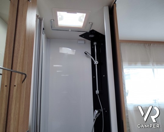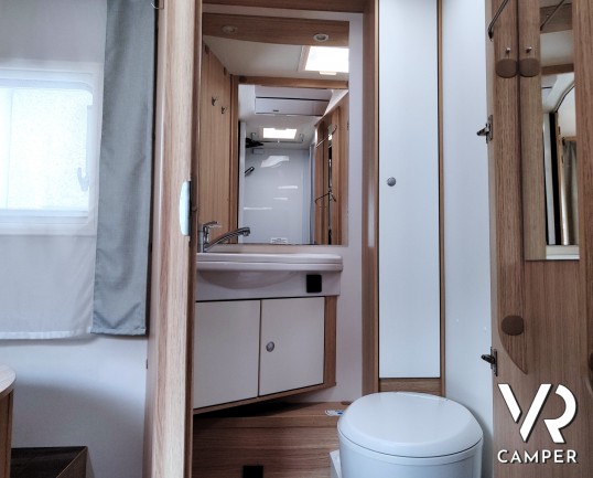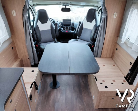 Camper semintegrale usato con letto nautico e letto basculante, bagno e doccia separati, ampia dinette. Su Fiat Ducato 140 CV. Da VR Camper a Torino.